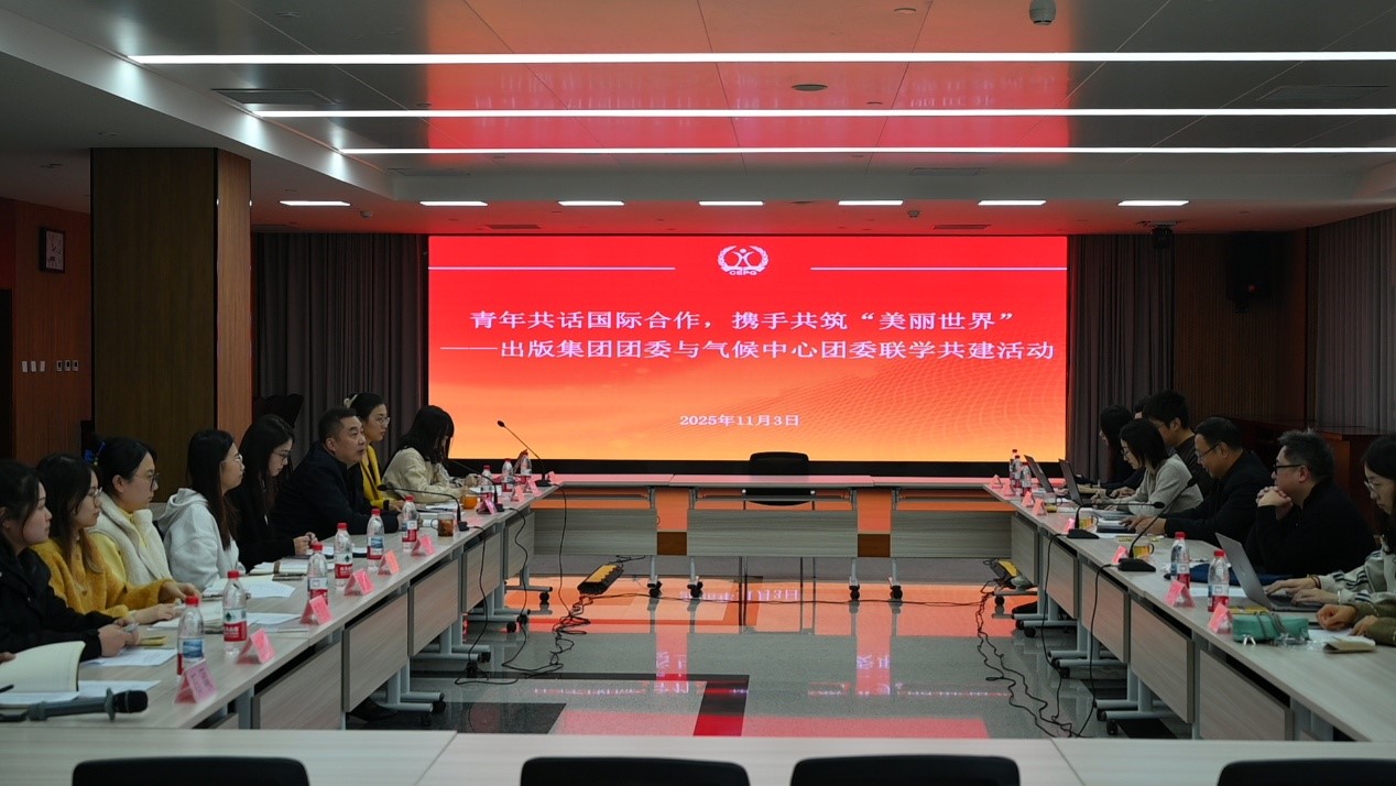 2025年11月3日下午,出版集團團委聯合國家應對氣候變化戰略研究和國際合作中心團委,圍繞“青年共話國際合作,攜手共筑‘美麗世界’”主題開展青年理論學習和交流。