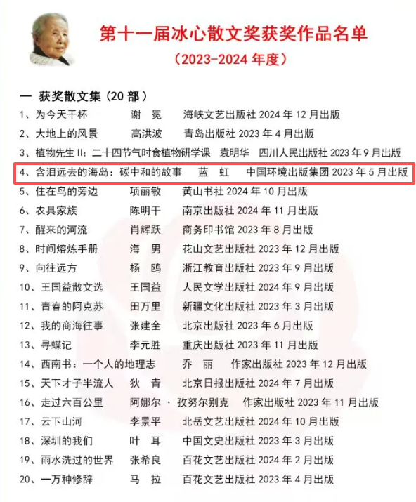 喜報!中國環境出版集團出版的《含淚遠去的海島:碳中和的故事》入選第十一屆冰心散文獎